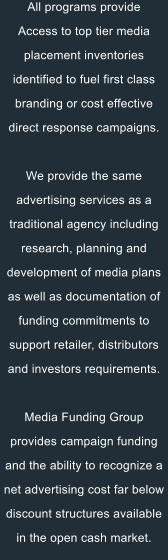 Media Funding Group provides private funding access for Advertising and Marketing campaigns in exchange for a flexible